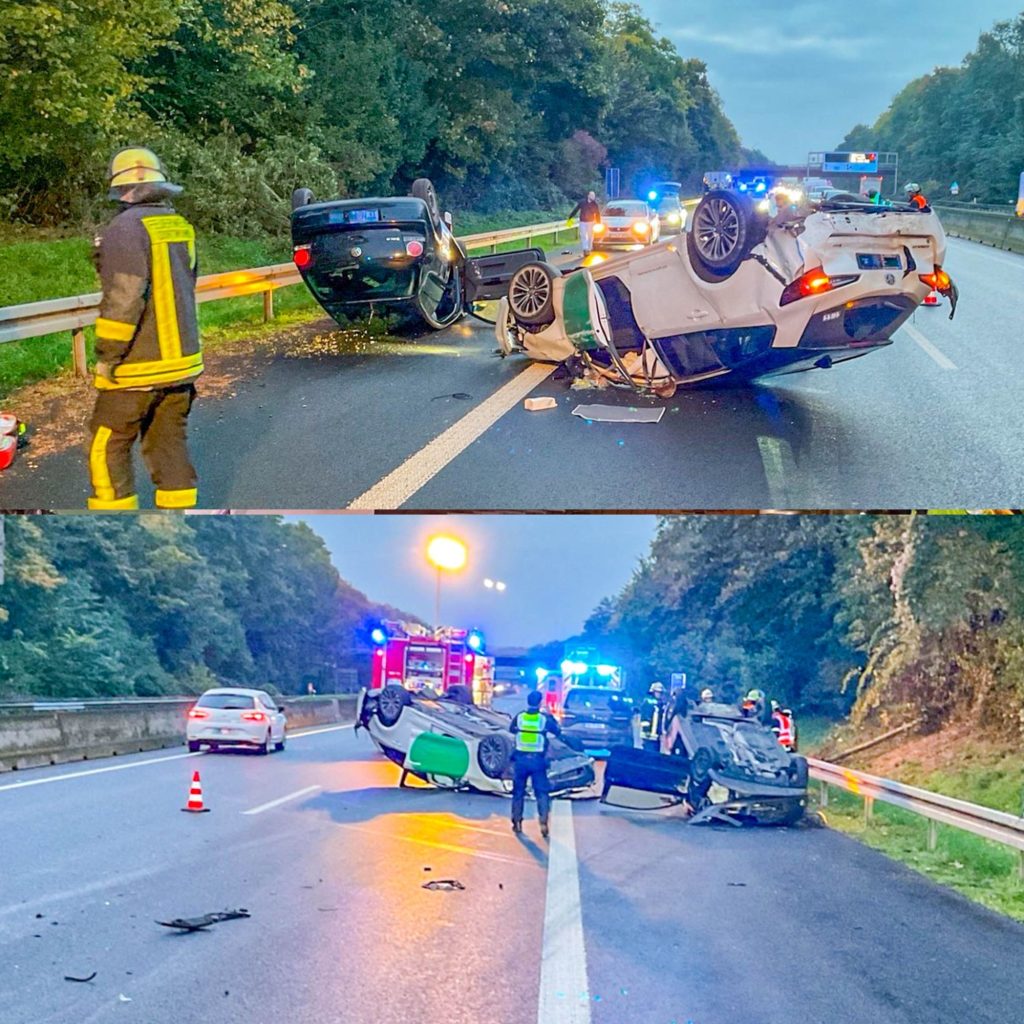Zwei Autos überschlugen sich und blieben auf dem Dach liegen. Drei Personen waren betroffen.