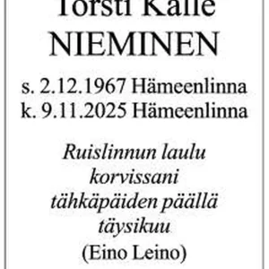 Somesta tunnettujen koirien isäntä ja antiikkialan yrittäjä Torsti Nieminen on kuollut 57-vuotiaana. Niemisen perhe vahvistaa suru-uutisen Hämeen Sanomille. Nieminen kuoli tapaturman seurauksena saamiinsa vammoihin 9. marraskuuta. Niemistä jäivät kaipaamaan…