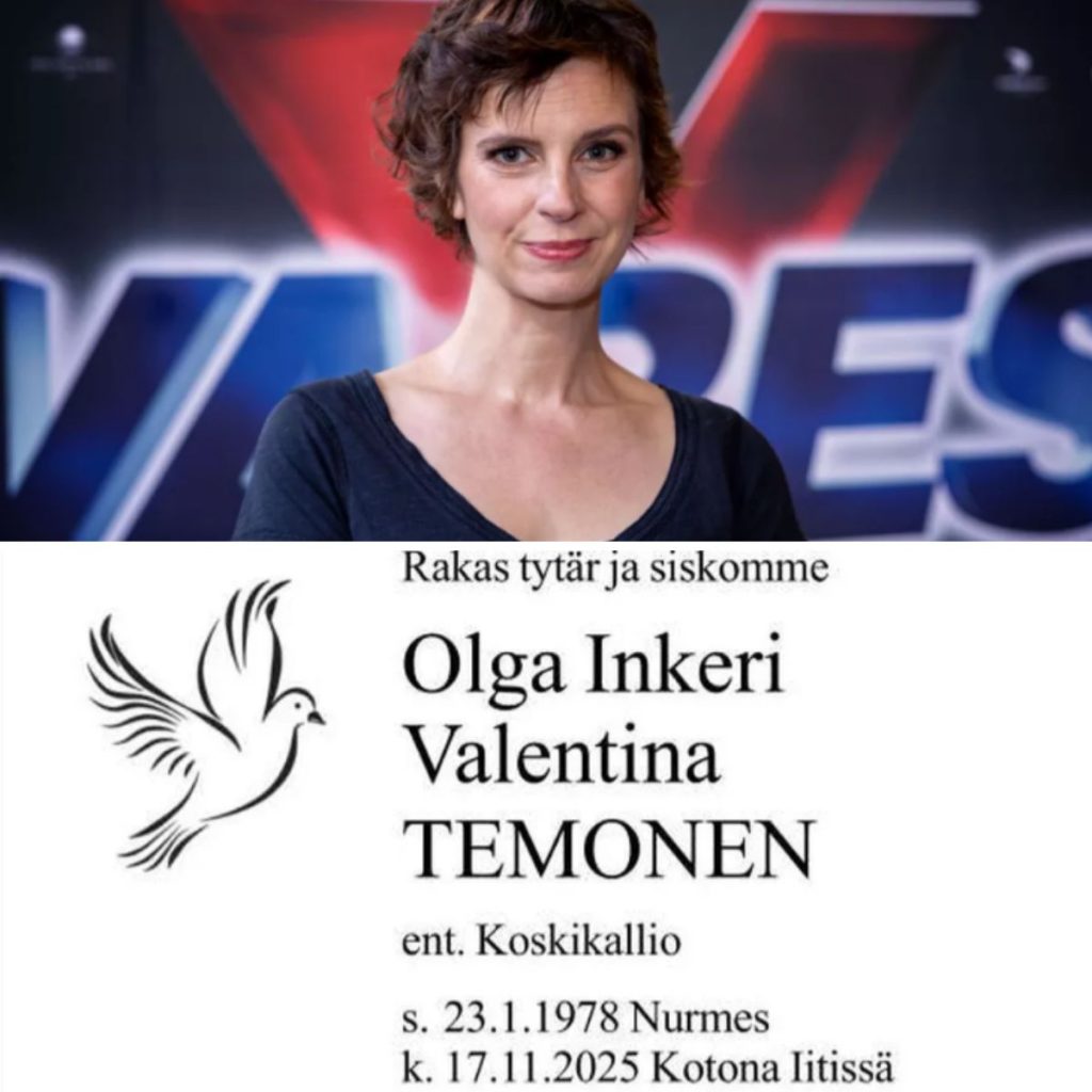 Olgan aiempi kuolinilmoitus julkaistiin sunnuntaina Helsingin Sanomissa. Aiemmassa kuolinilmoituksen jättäjinä oli Tuukka Temosen ja parin lasten nimet.
