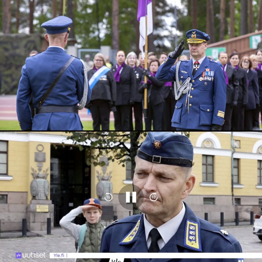 Ylen perjantai-illan televisiouutisissa kerrottiin Puolustusvoimien uudistumisesta. Uutisessa sotatalouspäällikkö, kenraaliluutnantti Jari Mikkonen on juuri kertomassa uusien tilojen rakentamisesta, kun taustalla kävelevä poika pysähtyy, kääntyy kohti kameraa ja vetää särmänä kättä lippaan. Tervehdyksen jälkeen poika jatkaa matkaansa naama peruslukemilla.