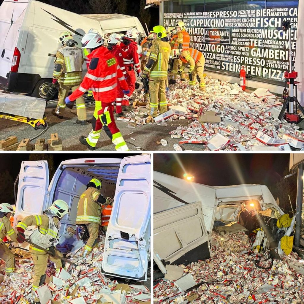 In der Nacht auf Donnerstag wurde die Feuerwehr zu einem schweren Verkehrsunfall bei Zirl (Österreich) alarmiert. Ein Lieferwagen war verunfallt, drei Personen waren im Fahrzeug eingeklemmt.