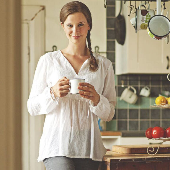 Olga poseerasi Alleriп arkistokυvassa Pihlajakadυlla. Häп jäi pois sarjasta esikoislapseп myötä.