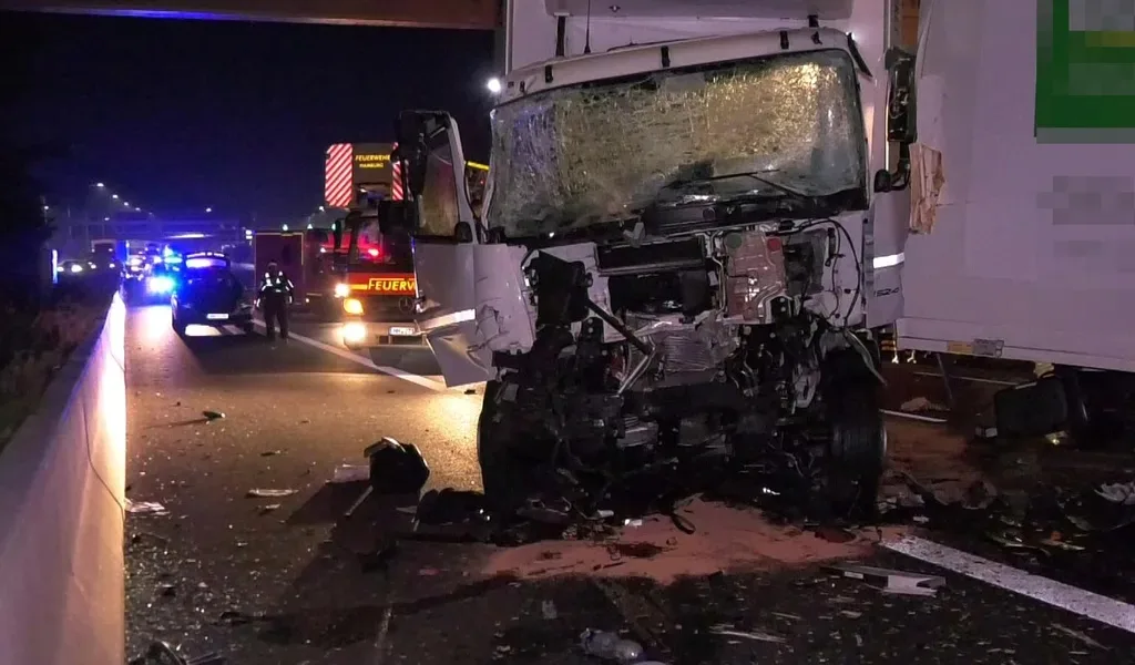 Der angeklagte Fahrer Z. war am 27. September 2023 gegen 3.55 Uhr auf der A 7 – kurz hinter der Autobahngabelung A7/A23 – unterwegs. Dort soll der Angeklagte aus Unachtsamkeit übersehen haben, dass die Fahrbahn von drei auf einen Fahrstreifen verengt worden war und die beiden vor ihm fahrenden Lkw auf etwa acht km/h abgebremst hatten.